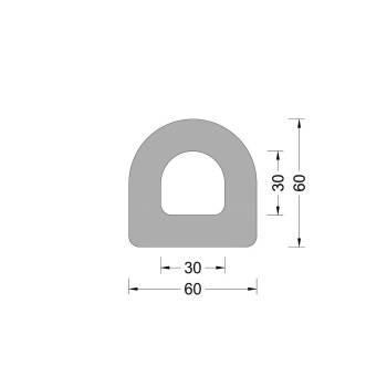 Rubber D fender profiel met de breedtemaat van 60mm en de hoogtemaat van 60mm.