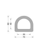 Rubber D fender profiel met een breedte van 70mm en een hoogte van 60mm.